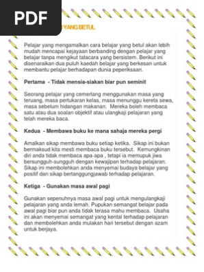 Aktiviti belajar secara berkumpulan boleh dijalankan pada bila-bila masa sahaja. Cara belajar yang betul Pelajar saya memberitahu bahawa markah kertas BM dia dalam peperiksaan Read More. Menambah pengetahuan dengan banyak keretan akhbar dan membaca.